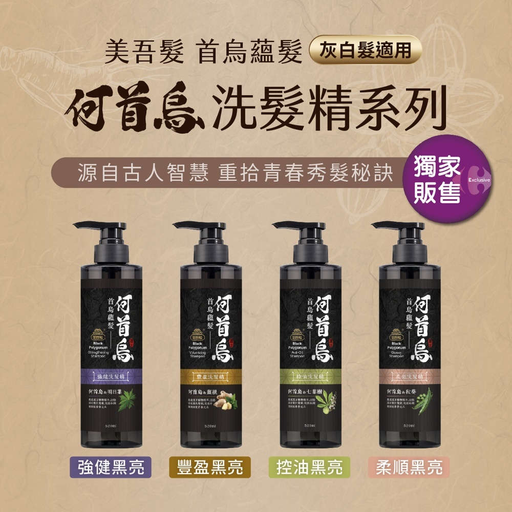 1.何首烏x五味子x莿莢決明-維持髮絲青春光澤,舒緩及活化頭皮。