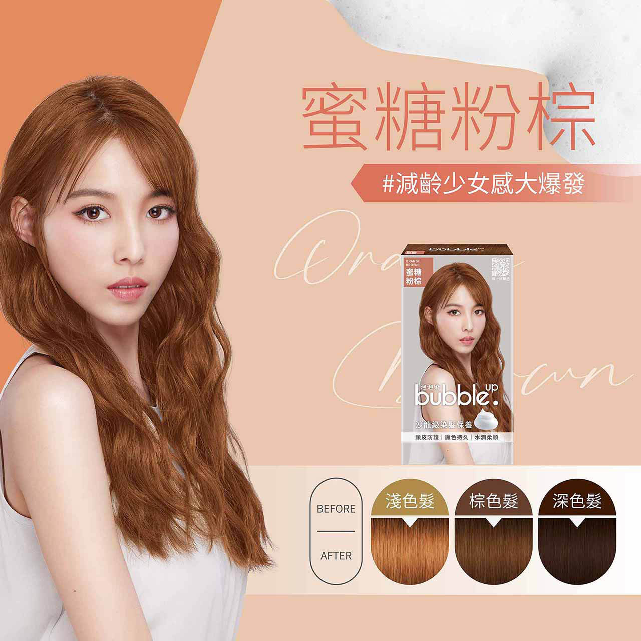 【bubble up】蜜糖粉棕.泡泡染(染劑50g+50g)/盒 內附修護鎖色髮膜、染前隔離液 單件賣場 (泡泡染/泡沫染)|美吾髮『可海外配送』