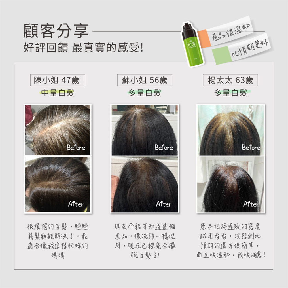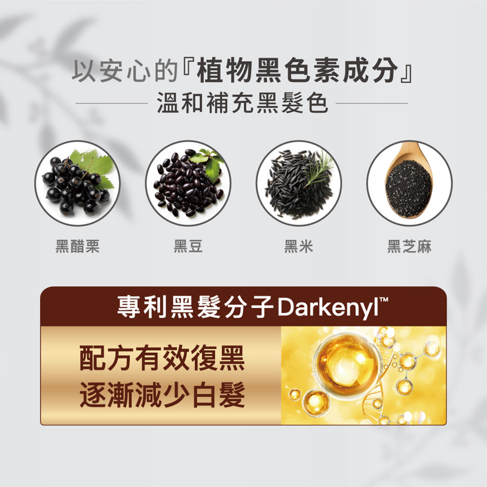 配方添加專利黑髮分子Darkenyl™有效復黑,逐漸減少白髮!