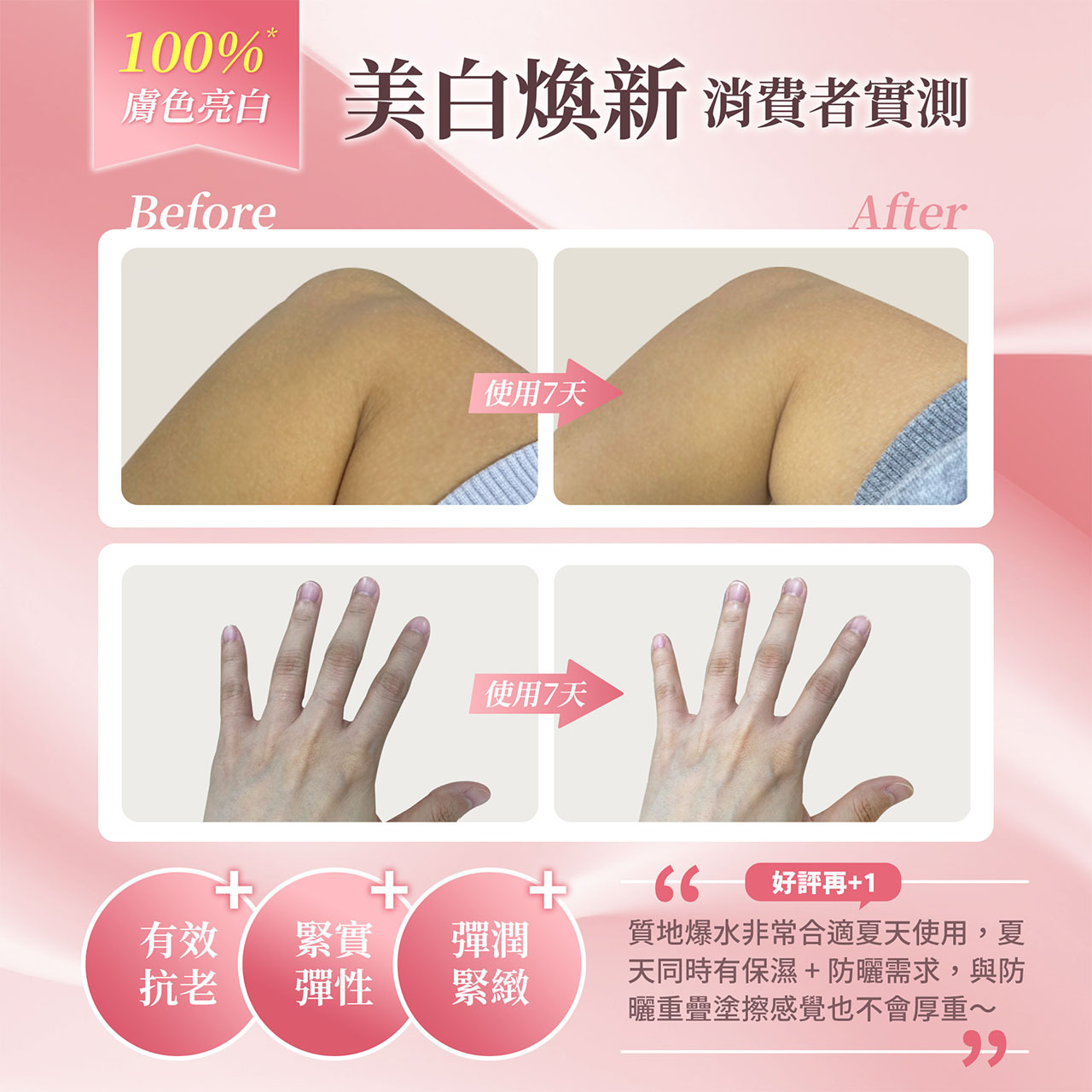 1. 7ˆ天水嫩白皙,透亮無暇,美白煥新,彈潤緊緻