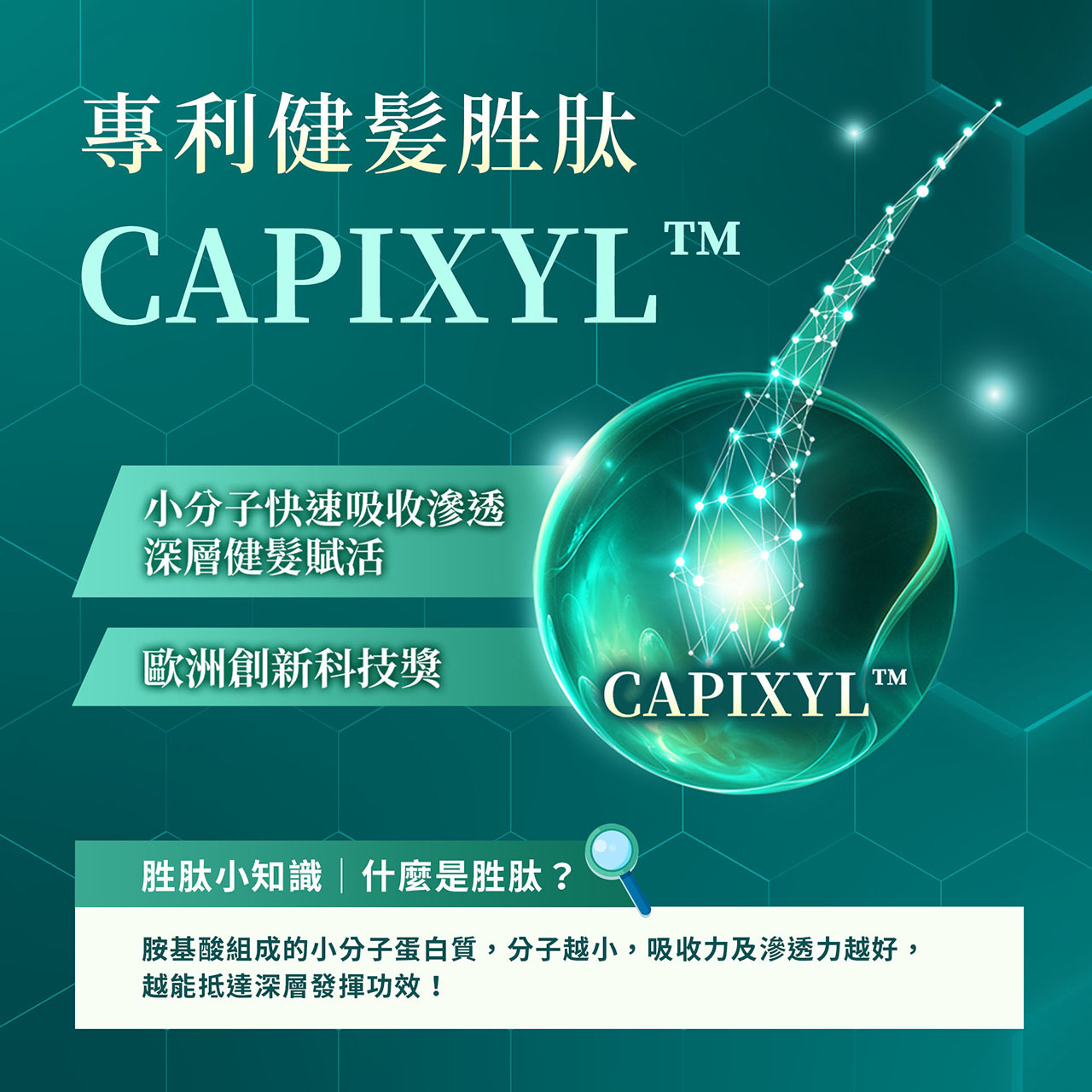 *添加專利CAPIXYL™健髮胜肽及有機薑根,分子小易滲透,活絡養護頭皮。直達底層活絡頭皮,強健髮根。