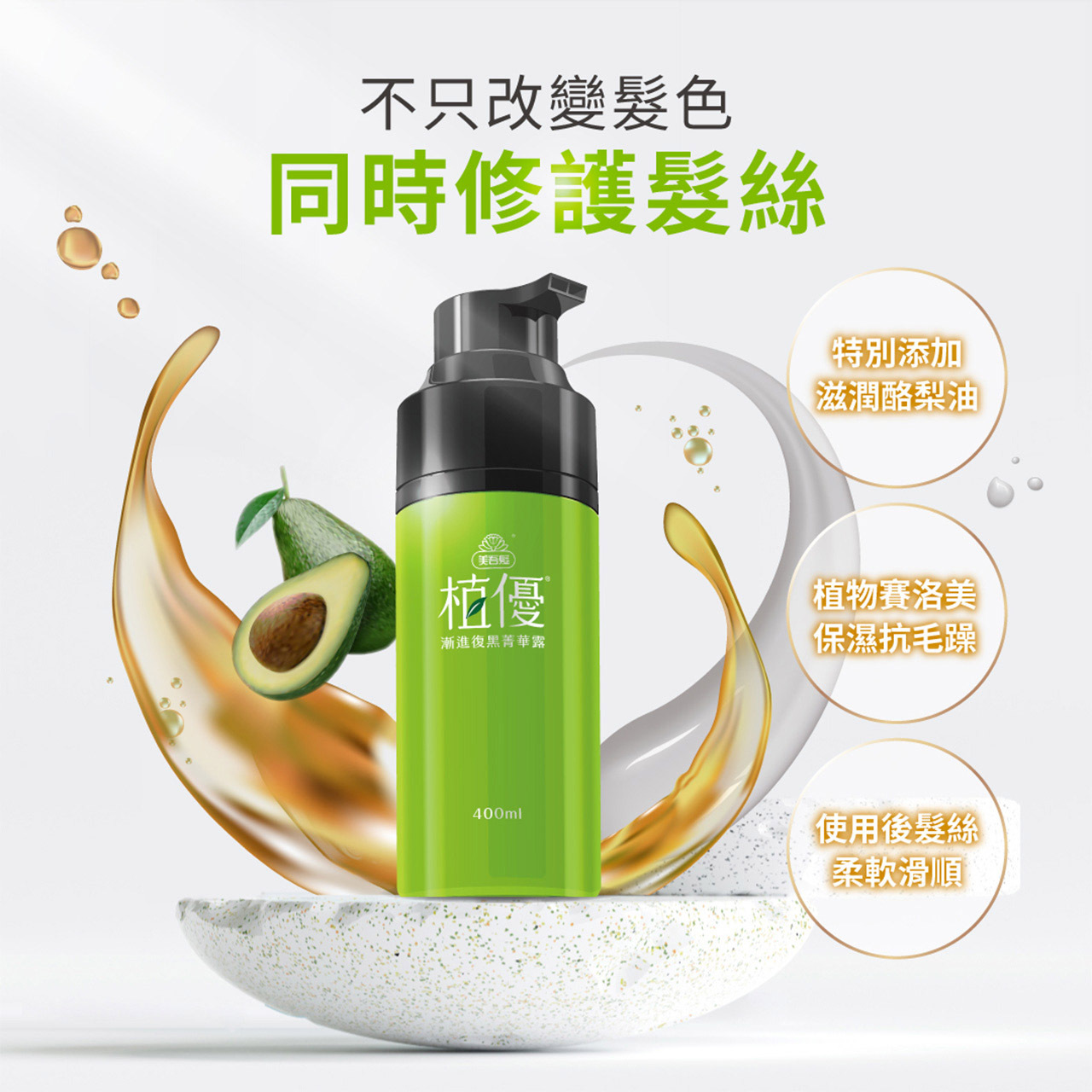 源自天然的遮白新體驗!只需3分鐘,隨每次使用白髮逐漸復黑,就像洗髮般簡單。