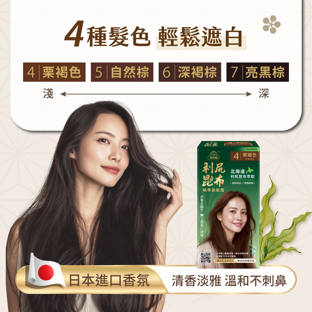 【美吾髮利尻昆布】6深褐棕.植萃染髮霜(40g+40g)/盒 單件賣場 (昆布染/植萃染/溫和遮白/無添加阿摩尼亞/永久性染髮)|美吾髮『可海外配送』