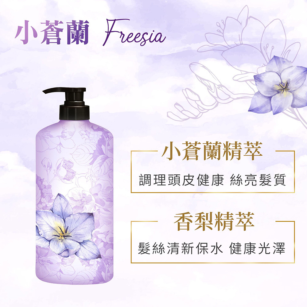 珍稀小蒼蘭精萃,花秘淬鍊,調理頭皮,絲亮髮質。