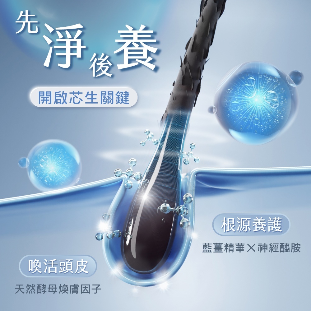 天然認證藍薑精華及神經醯胺,油水平衡、提升頭皮防護力