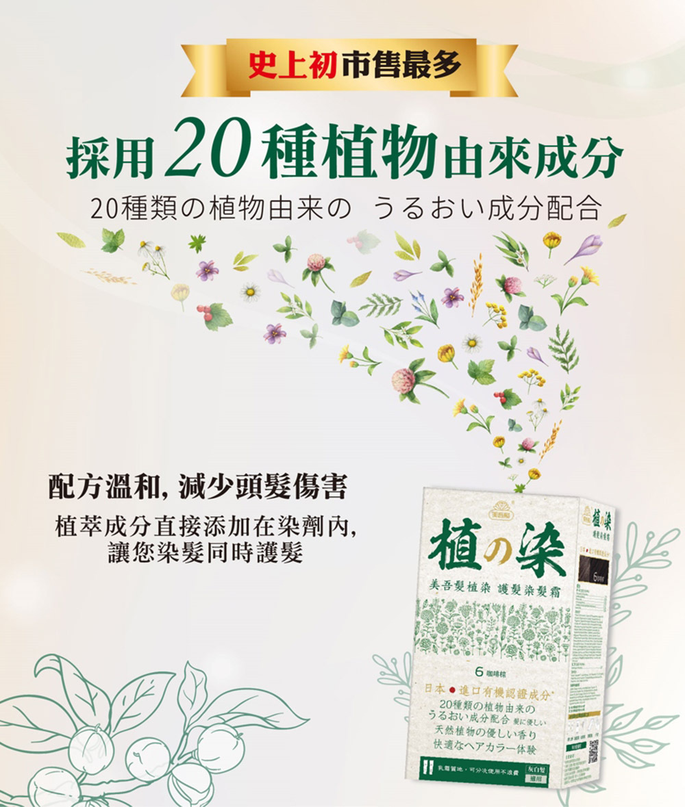【植の染】6號咖啡棕‧護髮染髮霜(40g+40g)/盒 單件賣場 (植染/植之染/植的染/灰白髮適用/遮蓋白髮/永久性染髮)|美吾髮『可海外配送』