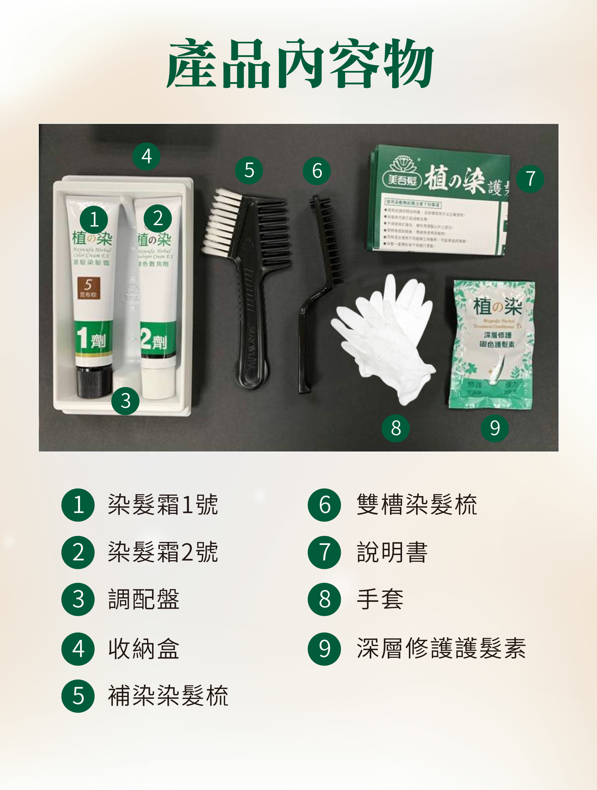 染髮前請先詳閱外盒包裝及內附說明書的圖文說明。