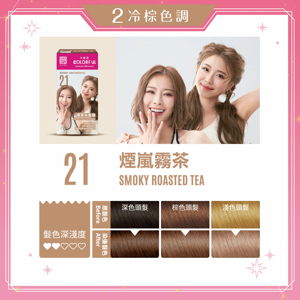 乳霜顯色配方:乳霜質地緊密包覆髮絲,顯色飽和均勻
