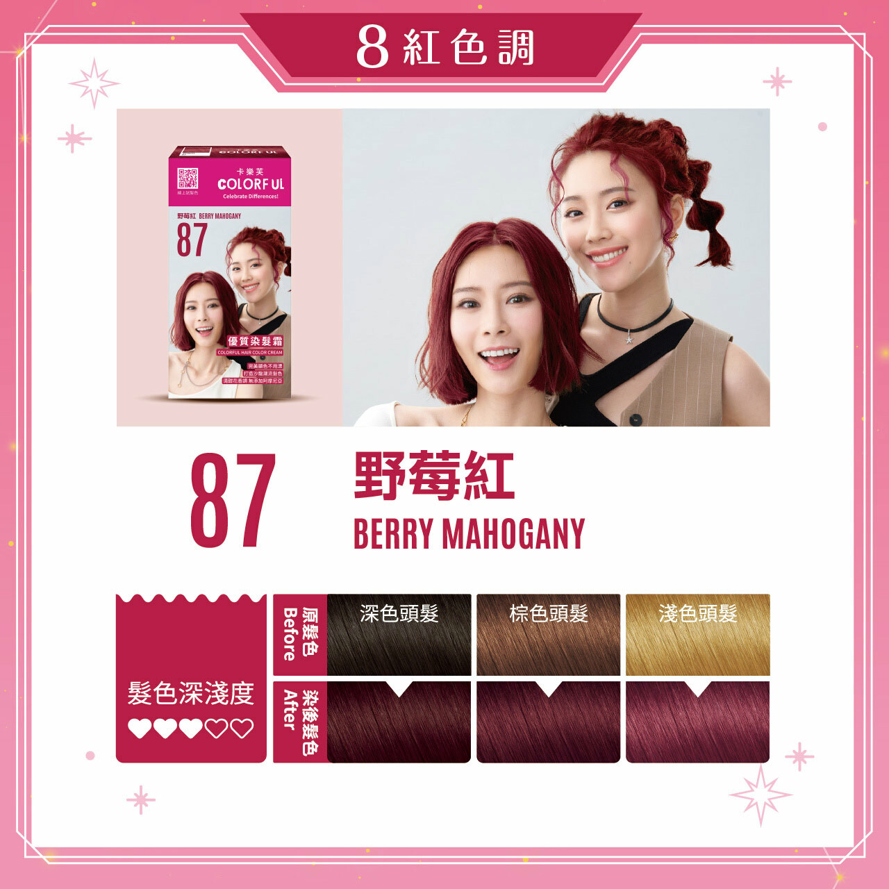 包裝及圖文髮色僅供參考,個人染髮髮色會因染前深淺度、髮質、頭髮受損程度、室溫、染劑用量、染劑停留於頭髮放置時間長短而有所差異,每人實際染出之果不同屬正常現象。