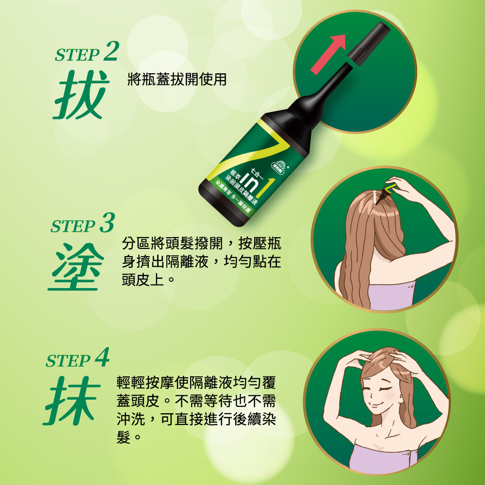 3. 4步驟隔離防護, 無需等待可直接染髮, 且不影響上色效果