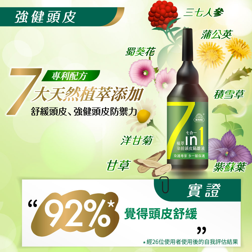 1. 添加美國有機蘆薈與尿囊素,能在頭皮上形成保濕防護膜, 預防染劑沾染頭皮, 同時滋潤頭皮, 享受舒適的染髮體驗