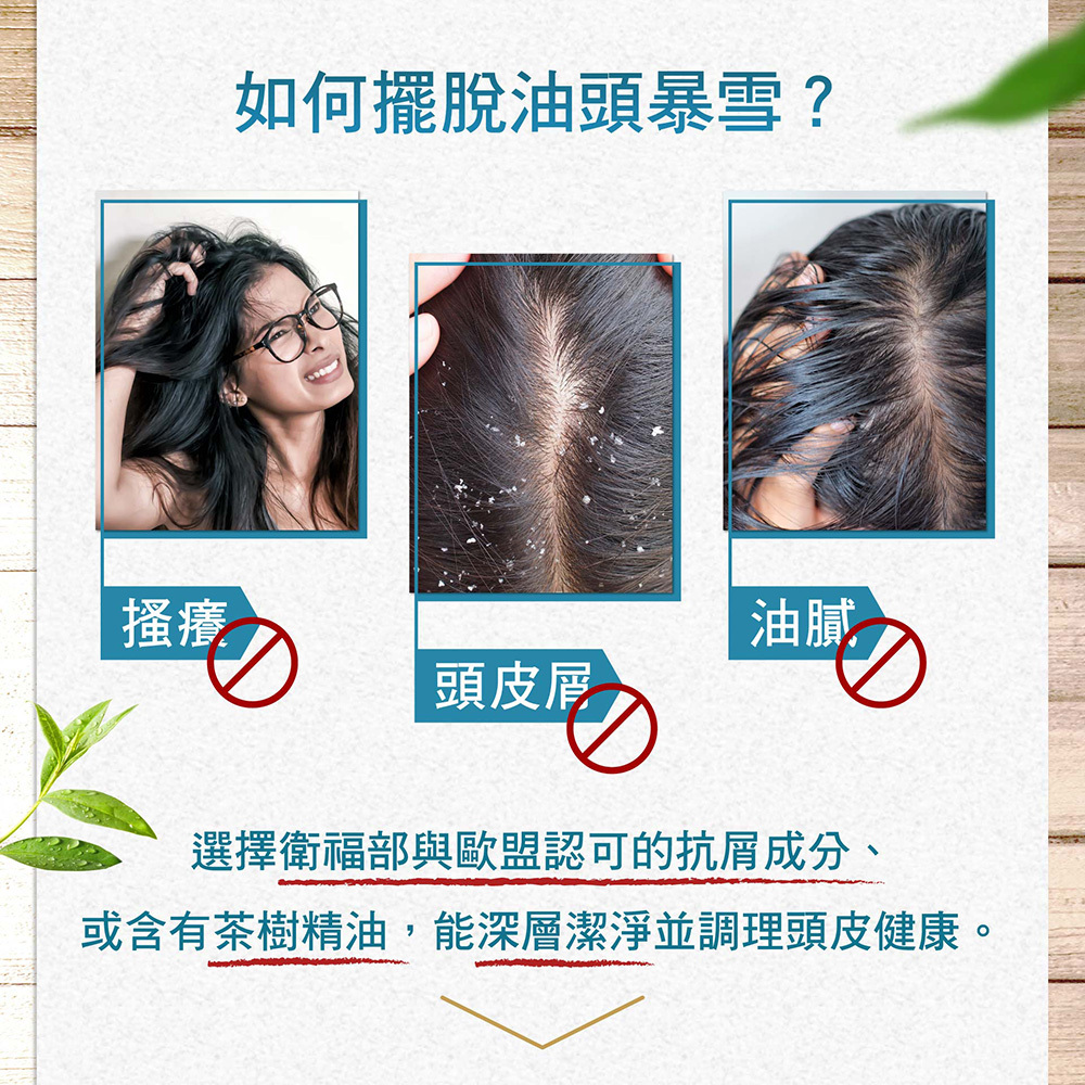 配方新升級! 添加5α Avocuta控油+雙重抗屑成分有效去除惱人頭皮屑,添加植萃甘草素舒緩頭皮不適,重拾自信健康髮。