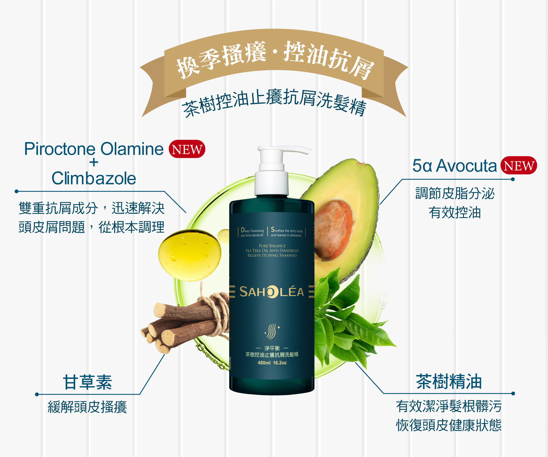 茶樹雙效抗屑►雙重抗屑配方+茶樹精油添加,舒緩頭皮敏感不適,有效去除惱人頭皮屑,重拾健康自信髮