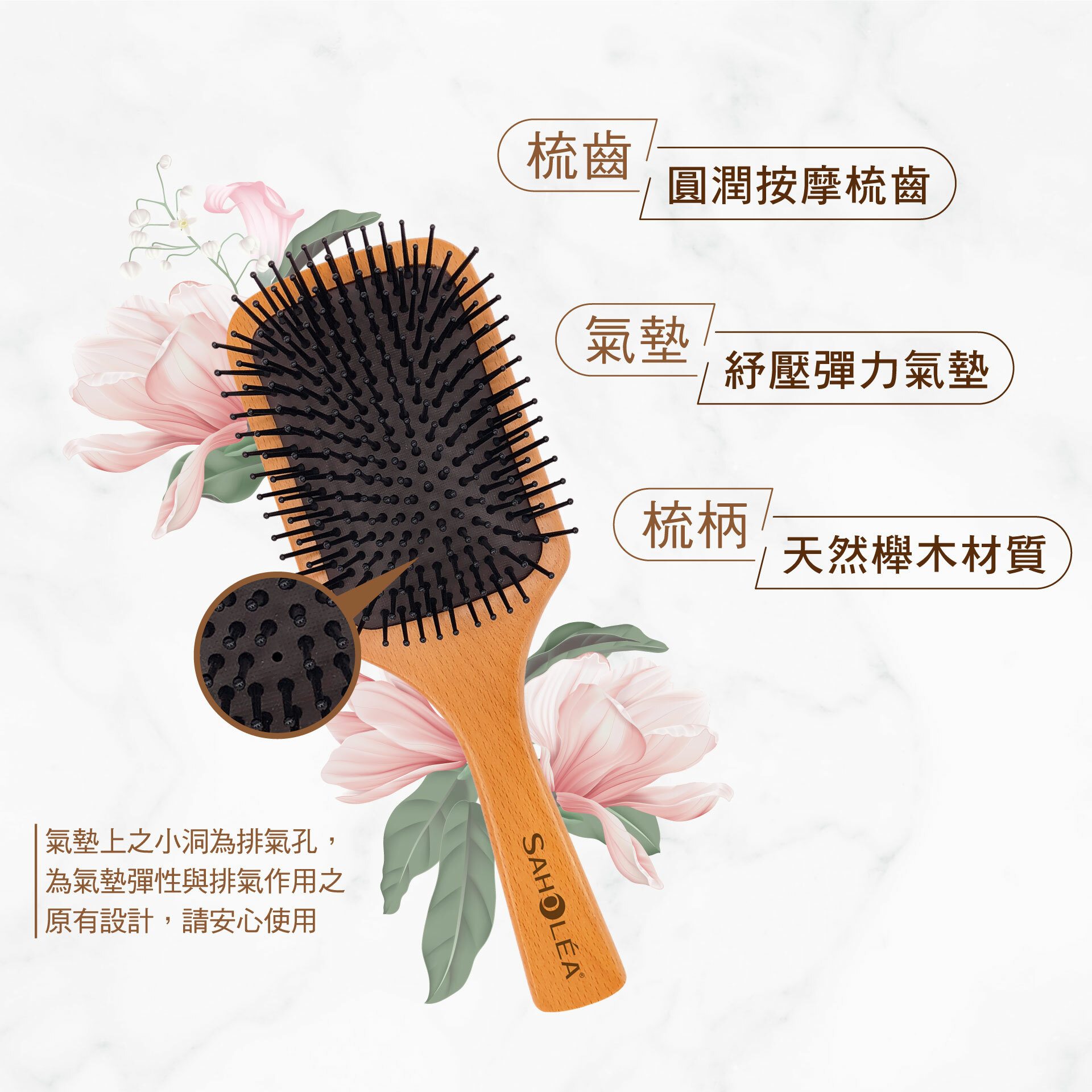 天然櫸木打造的氣墊髮梳,