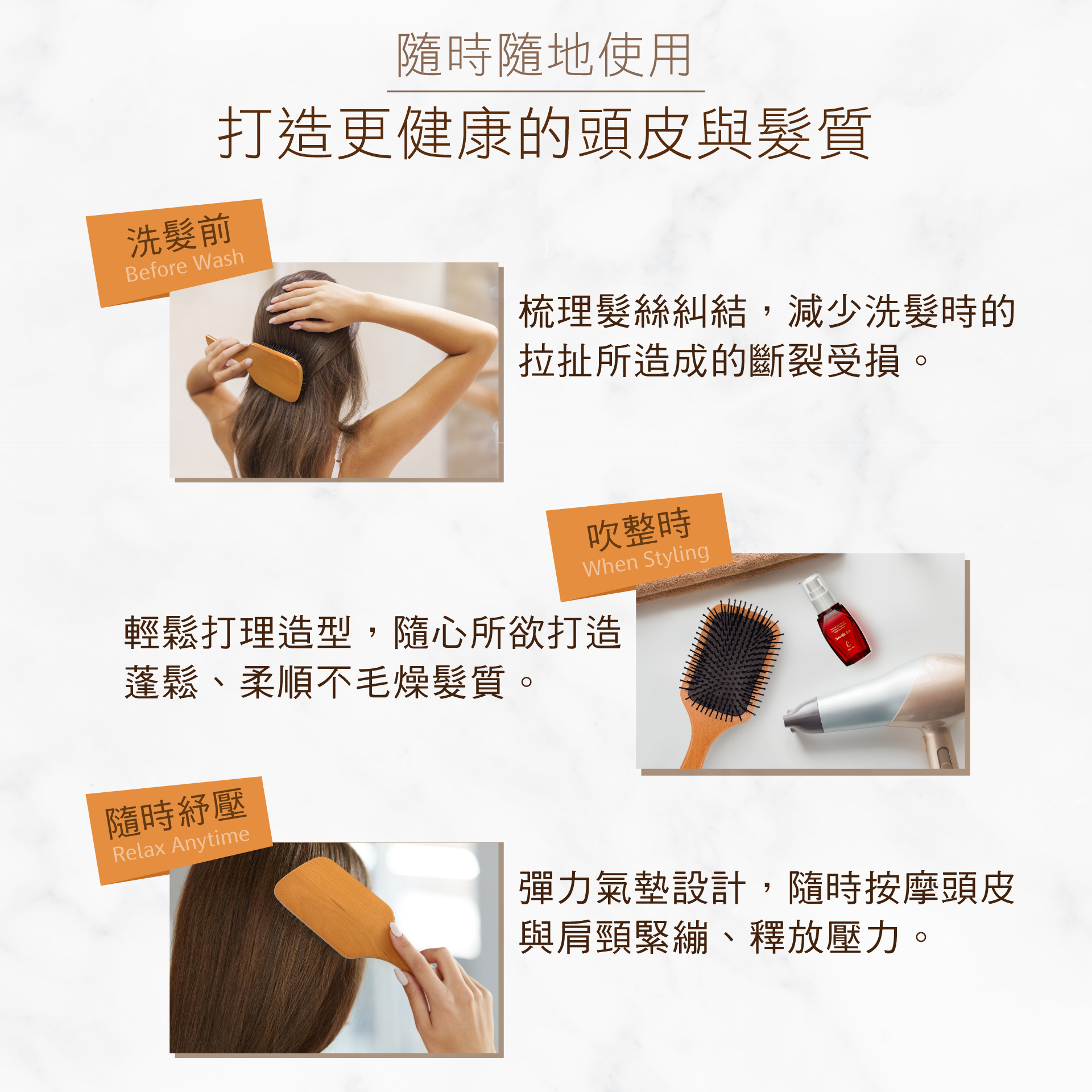 梳髮同時保養,輕鬆打造美麗秀髮。