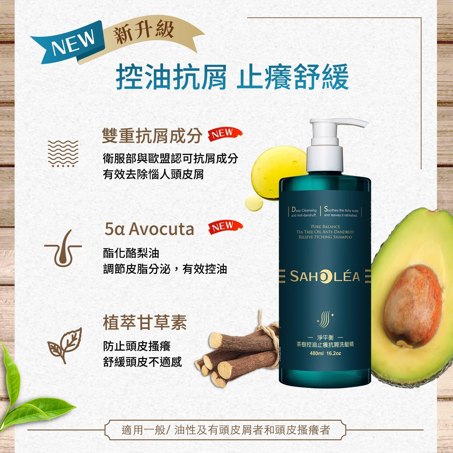 洗髮精配方新升級! 添加5α Avocuta控油+雙重抗屑成分有效去除惱人頭皮屑,添加植萃甘草素舒緩頭皮不適,重拾自信健康髮。