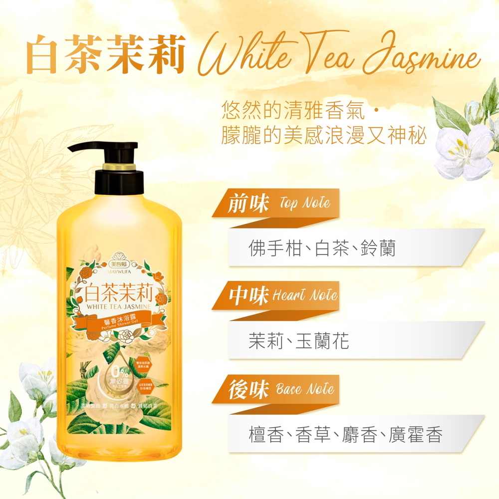 淬鍊頂級白茶與茉莉精萃,溫和調理並滋潤肌膚,沐浴後散發淡雅清香。
