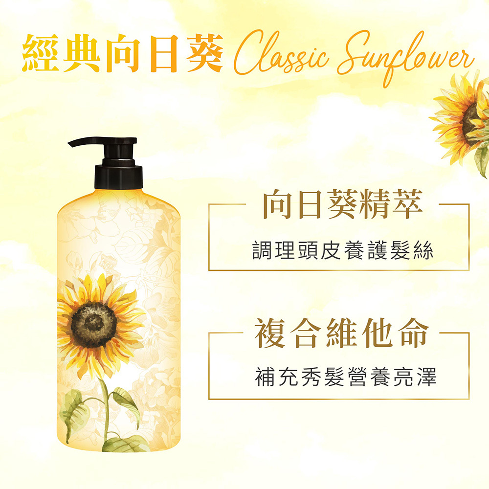 汲取飽滿向日葵花朵植萃精華,悉心照護秀髮。