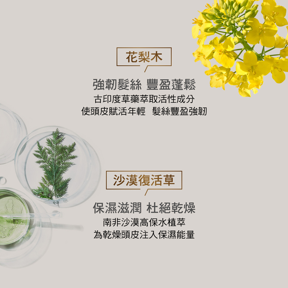 *冰峰雪融花萃取,滋養賦活頭皮,注入青春能量,展現亮澤秀髮