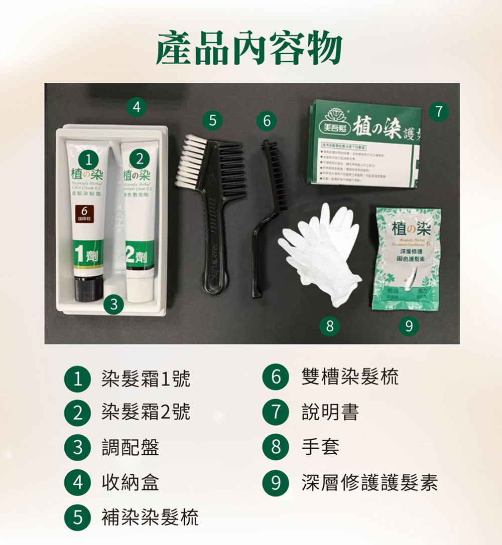 包裝及圖文髮色僅供參考,個人染髮髮色會因染前深淺度、髮質、頭髮受損程度、室溫、染劑用量、染劑停留於頭髮放置時間長短而有所差異,每人實際染出之果不同屬正常現象。