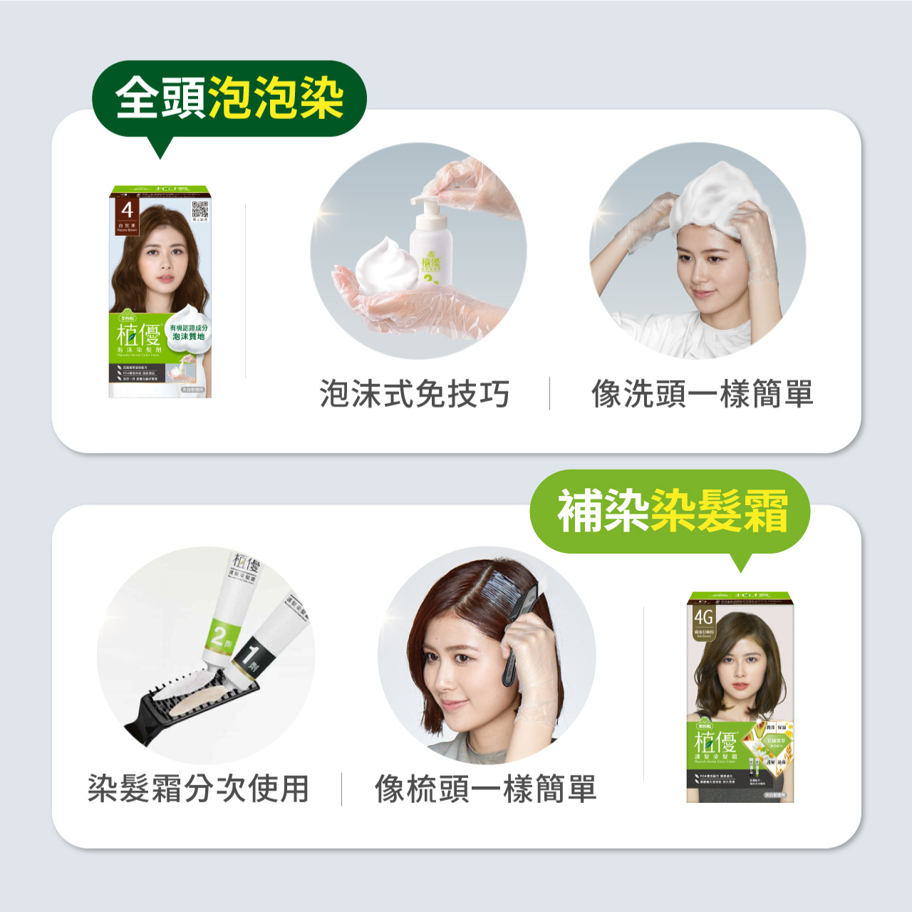 容量:泡沫染1劑50g+2劑50g/盒、染髮霜1劑40g+2劑40g/盒