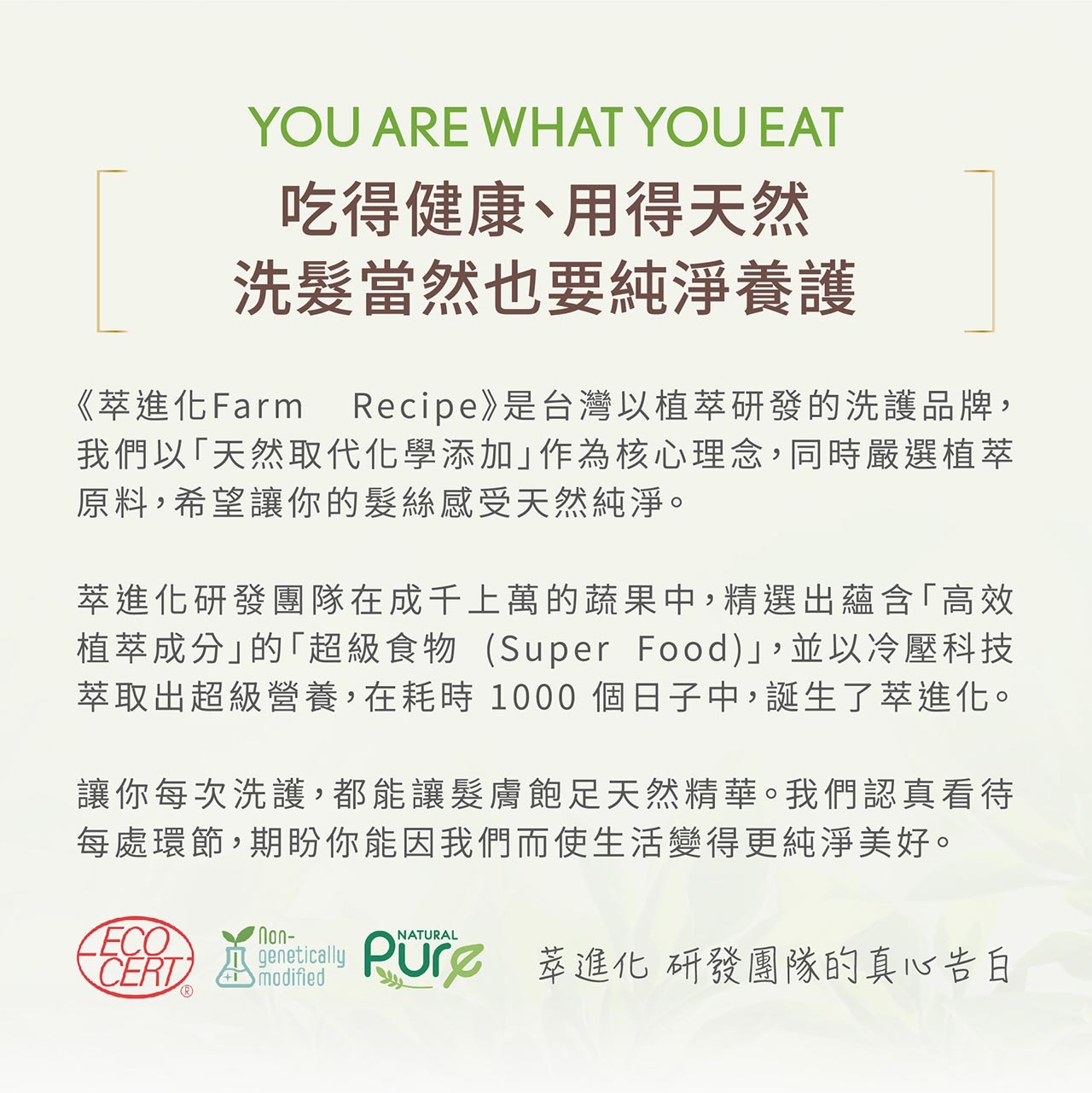Farm to Hair源自農萃天然哲學,將天然營養導入髮芯,耗時1000天匠心研發。