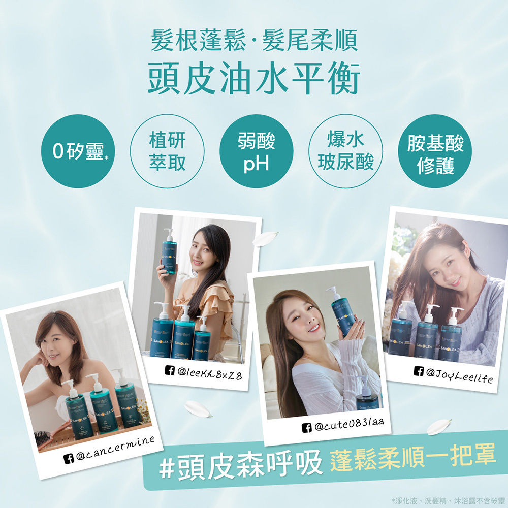 選用鮮萃洋甘菊、高濃度玻尿酸、保養品級胺基酸,維持油水平衡,洗後清爽不黏膩,蓬鬆豐盈