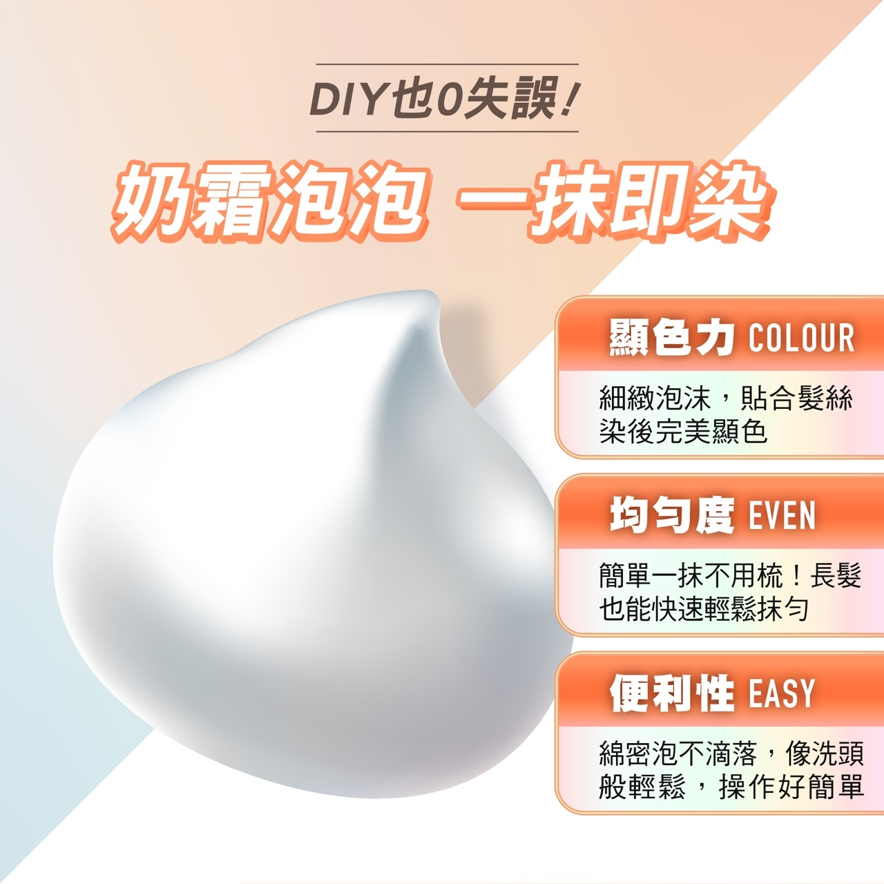 1. 奶霜泡泡,綿密不滴落,均勻上色,使用超Easy!