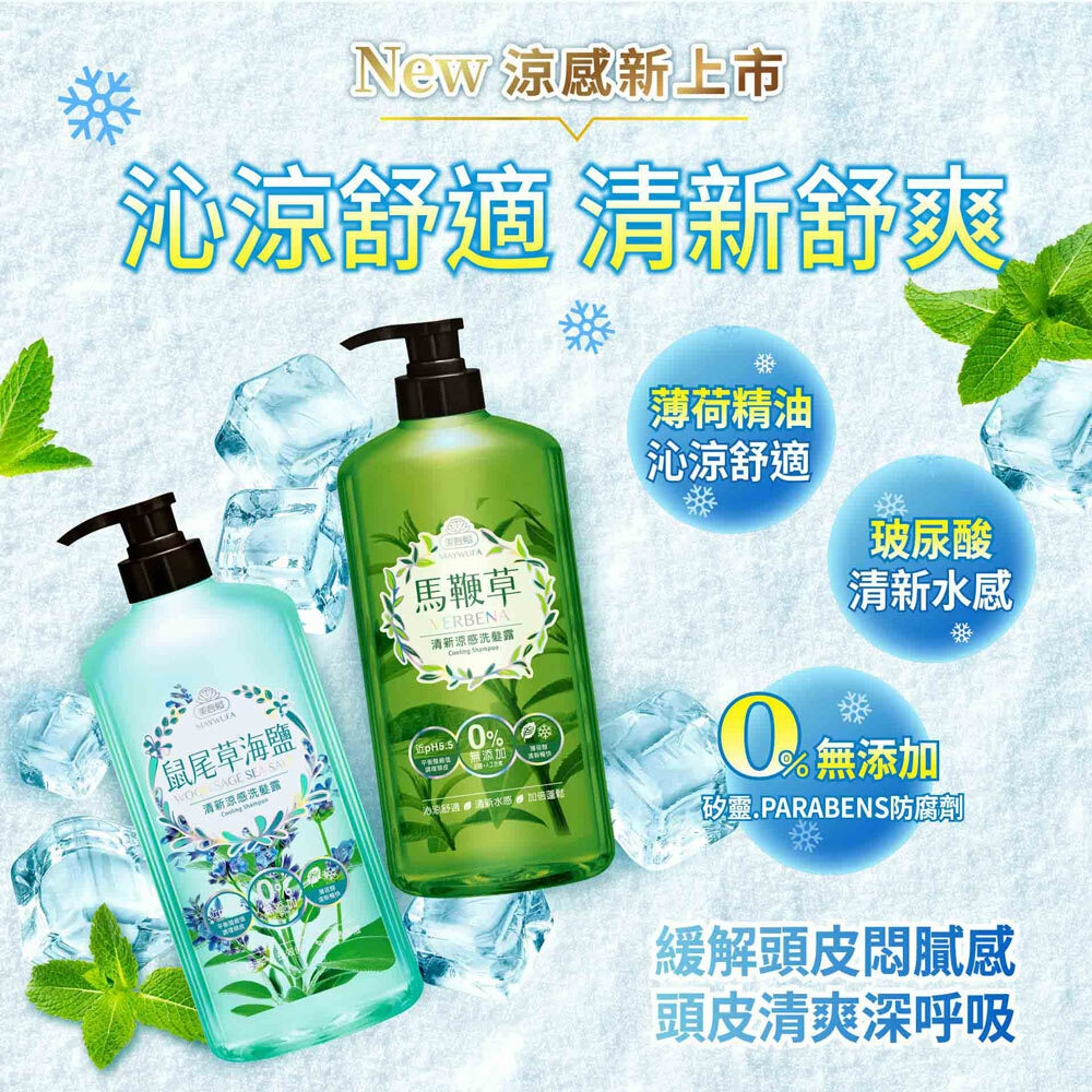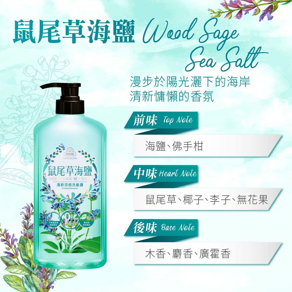 涼感薄荷,洗後頭皮清新暢快!令人著迷的海洋鹹味搭配陽光灑下的鼠尾草香味,彷彿漫步於海岸的清新慵懶香氛。0矽靈,無添加人工色素、無添加PARABENS,近pH5.5弱酸溫和配方