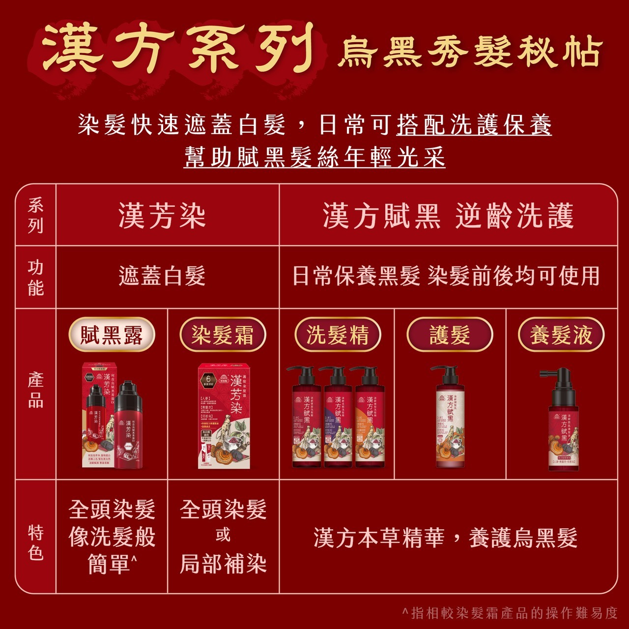 遮白染髮大突破《美吾髮漢芳染何首烏賦黑菁露EX》溫和漸進賦黑,遮蓋白髮就像洗髮般簡單!